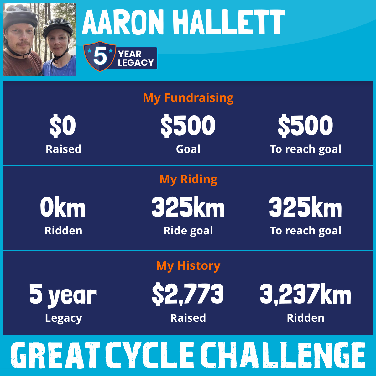 1,234 km Ridden$837 Raised2023