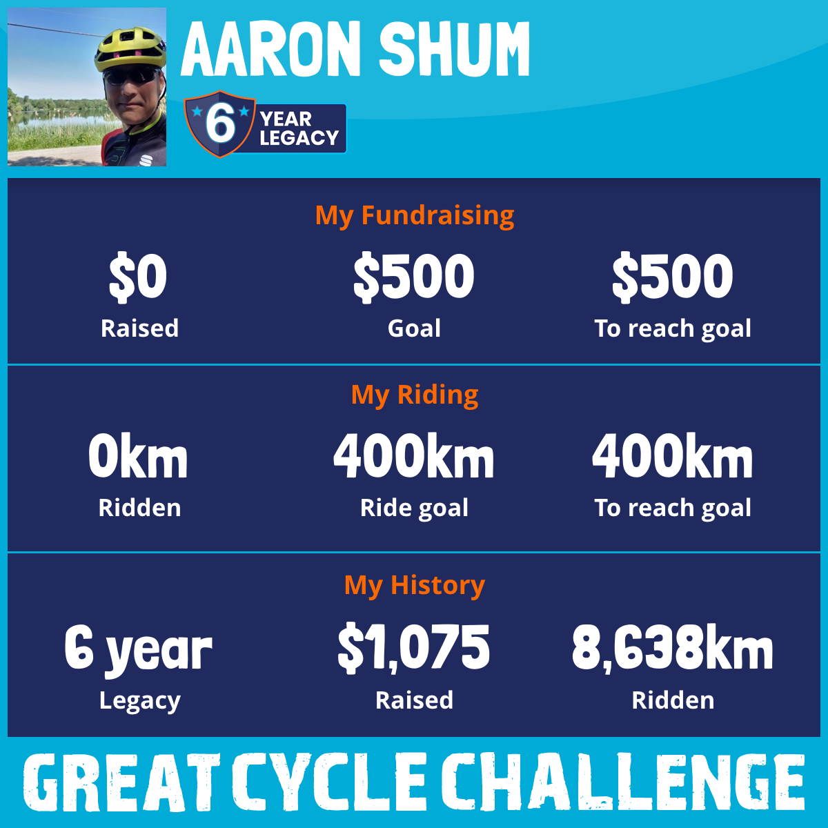3,007 km Ridden$1,075 Raised2020