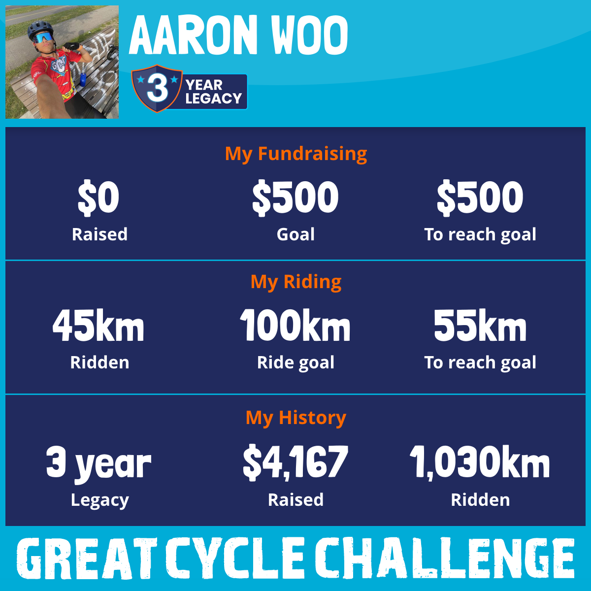 I am riding 100 km in memory of Walter & Edmond Woo. Please sponsor me and support my challenge to fight kids' cancer and save little lives.