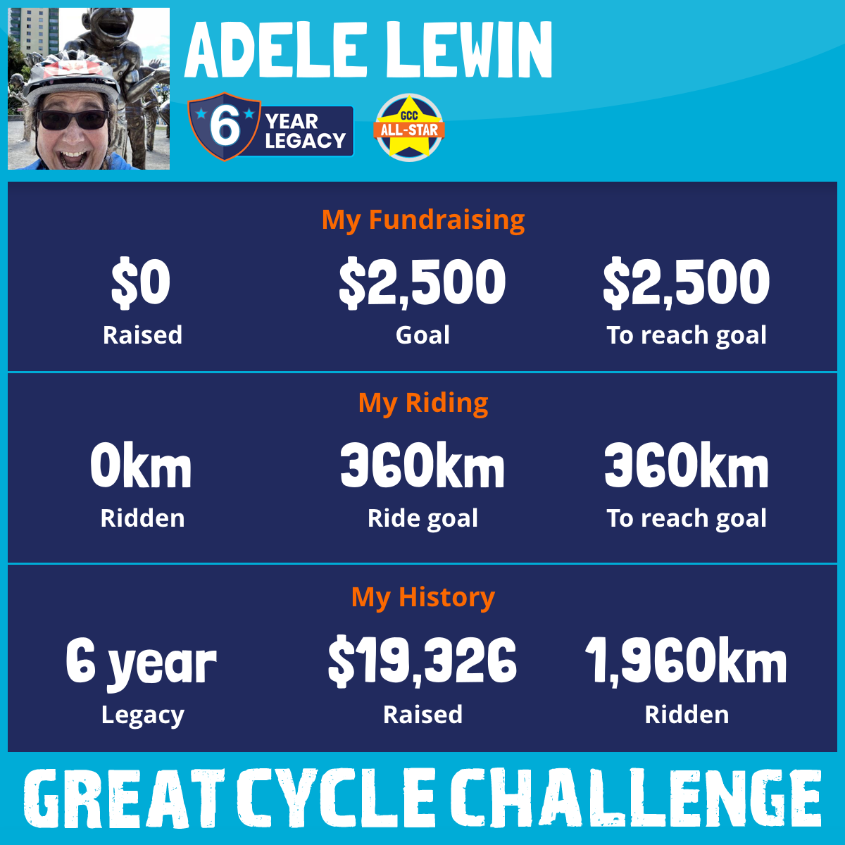 This is my 6th year taking part in the Great Cycle Challenge to fight kids' cancer!