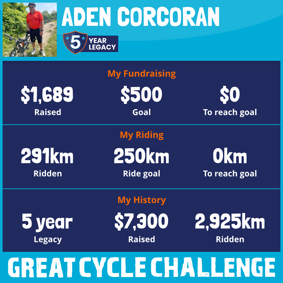 291 km Ridden$1,689 Raised2026