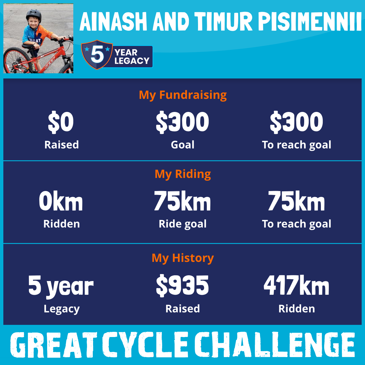 This August, Timur and I are taking part in the Great Cycle Challenge to fight kids' cancer!