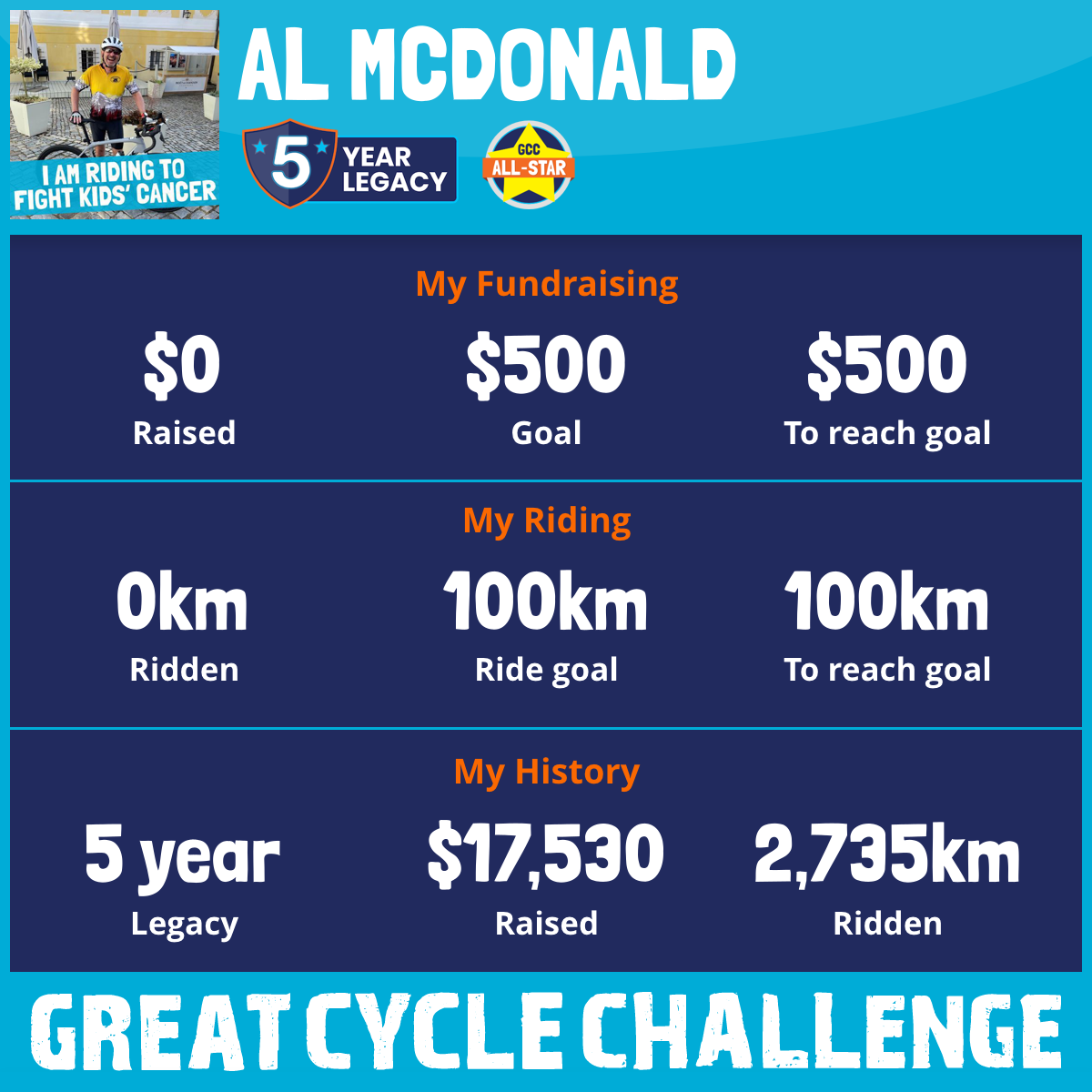 This August, I am taking part in the Great Cycle Challenge to fight kids' cancer!