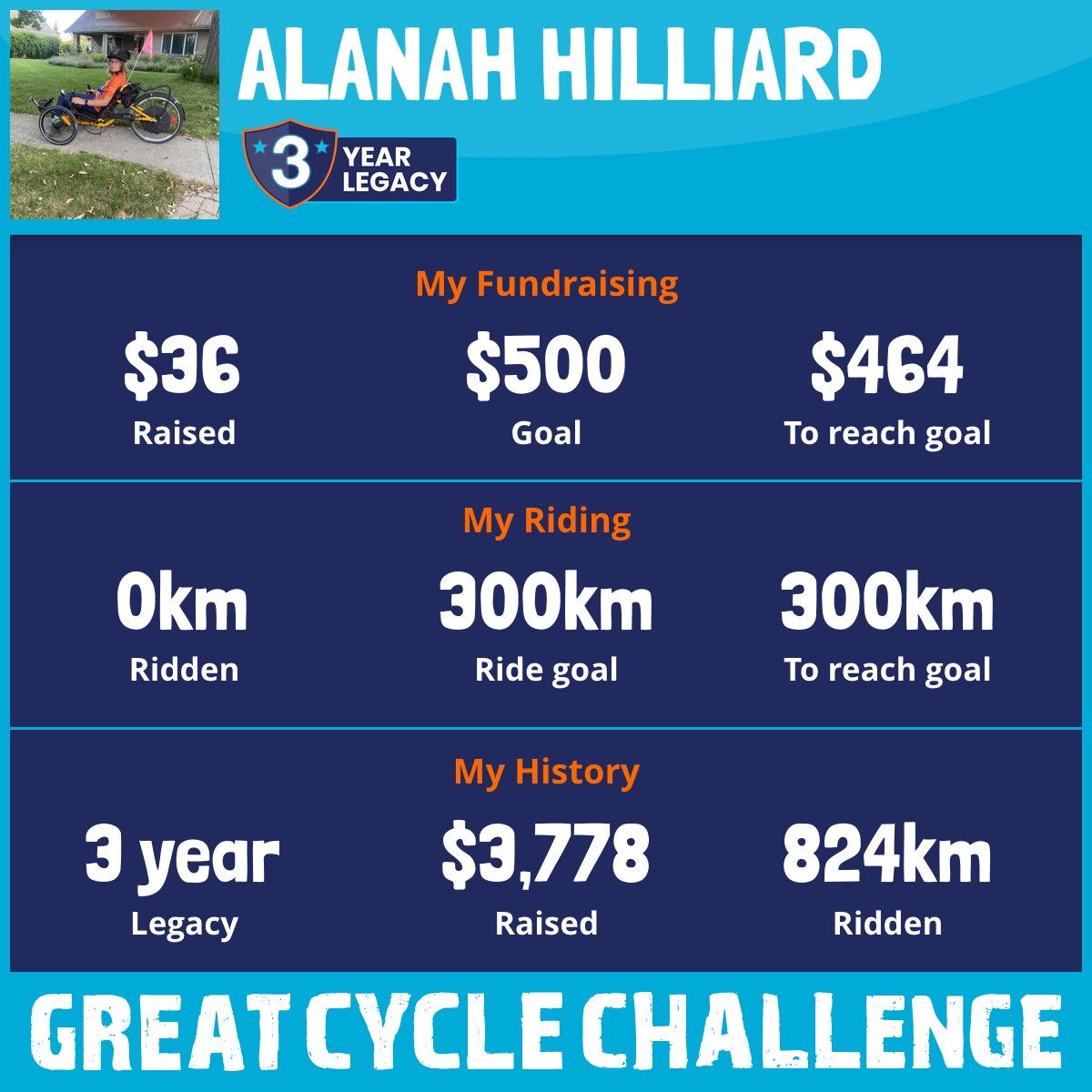 300 km Ridden$3,631 Raised2026