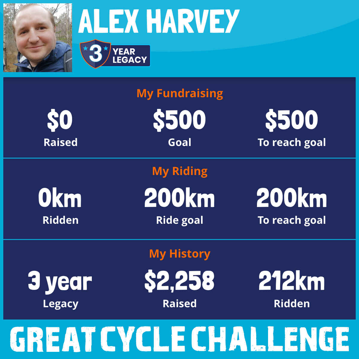 This is my third year doing the great cycle challenge. At the end of the challenge I aim to donate another $1.00 for each kilometre I ride. I am hoping to hit 150 kilometres or more. I have not been doing as much cycling this year but I am going to try to hit the same goal I had in 2023 regardless.