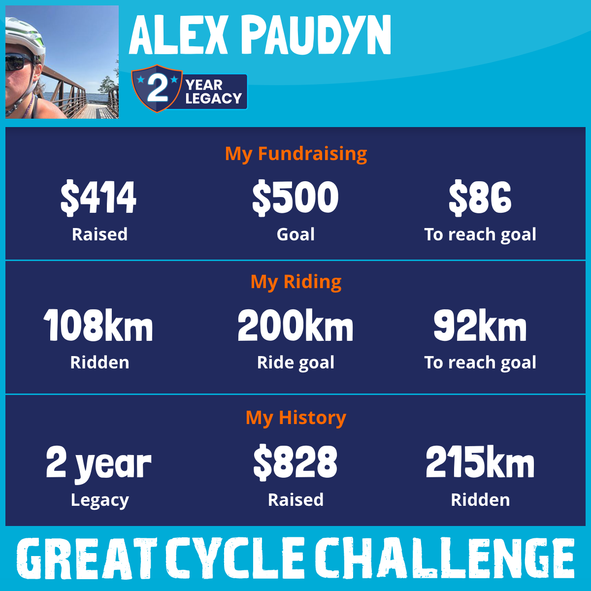 108 km Ridden$414 Raised2026