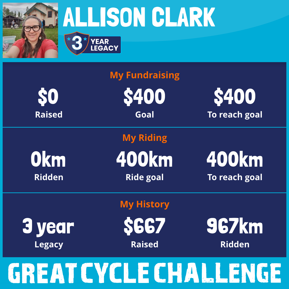 422 km Ridden$72 Raised2026