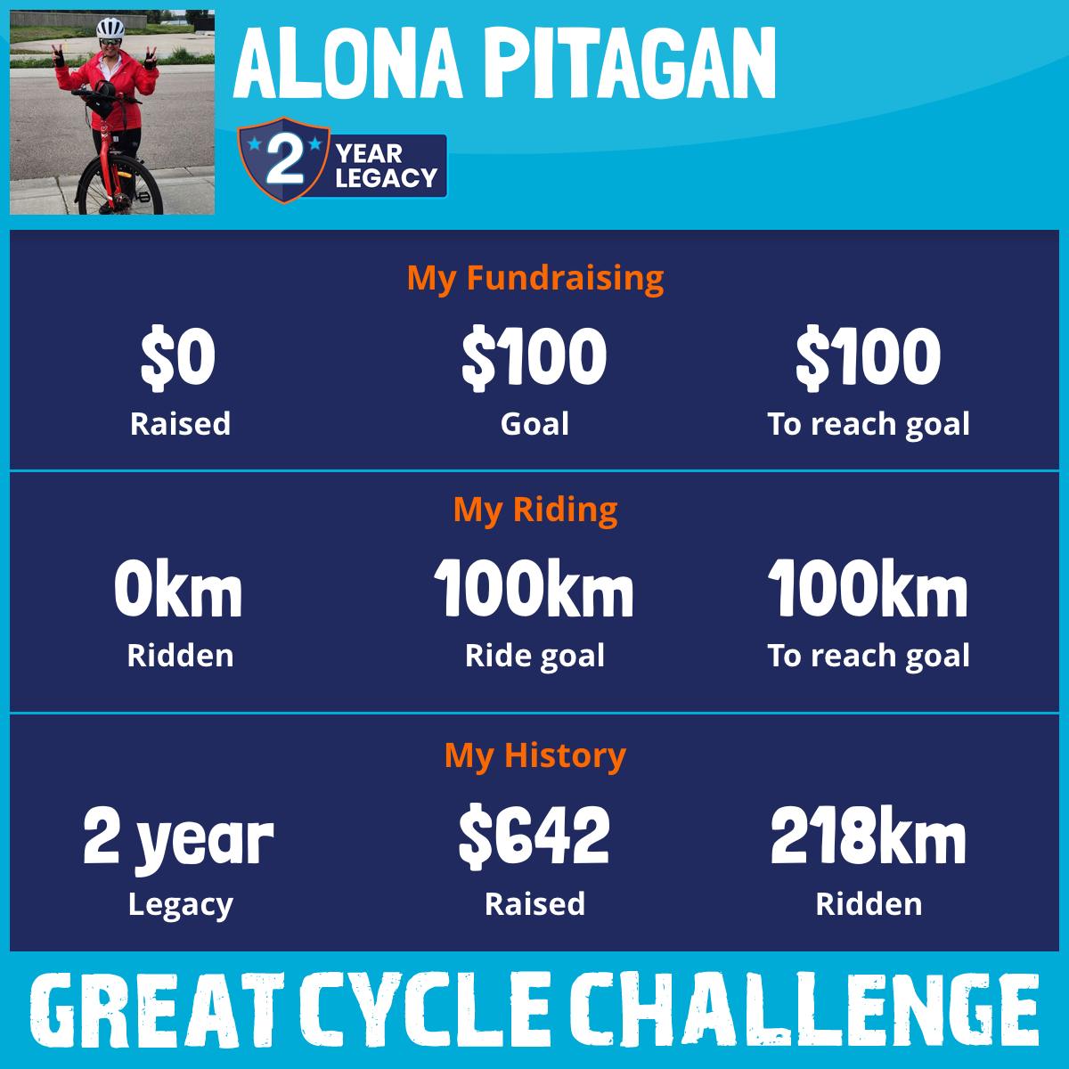 218 km Ridden$642 Raised2023