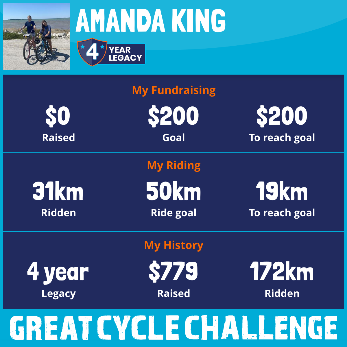I am riding 50 km in memory of Addison Hill and Mark Parkinson. Please sponsor me and support my challenge to fight kids' cancer and save little lives.