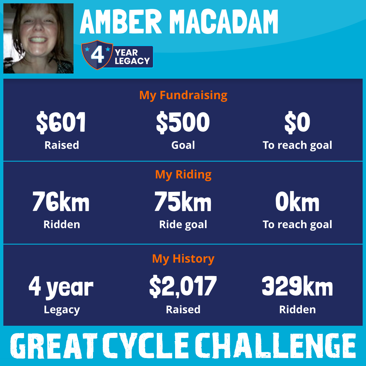 76 km Ridden$601 Raised2025