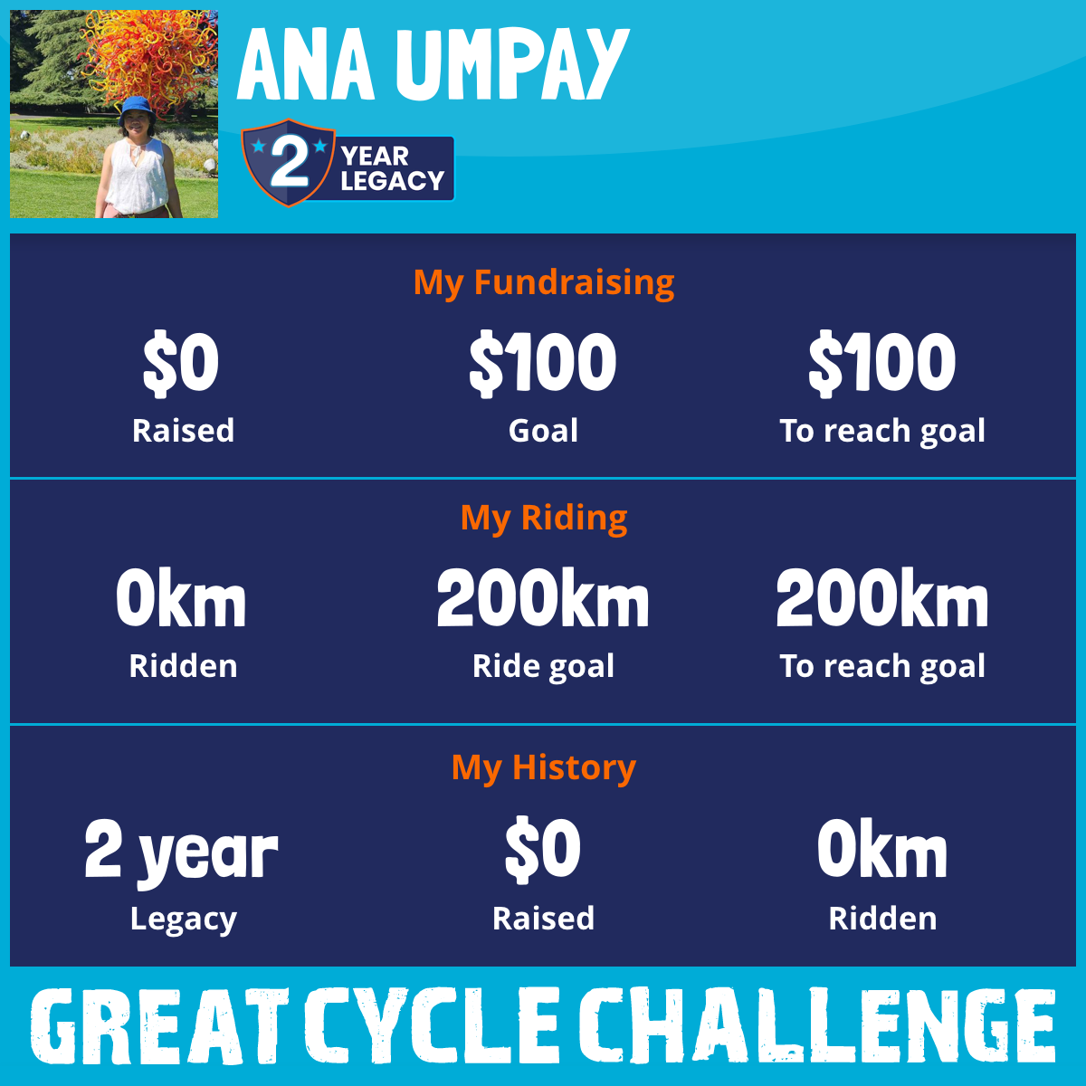 I am riding 200 km in memory of my mum, Marianita camiguin. Please sponsor me and support my challenge to fight kids' cancer and save little lives.