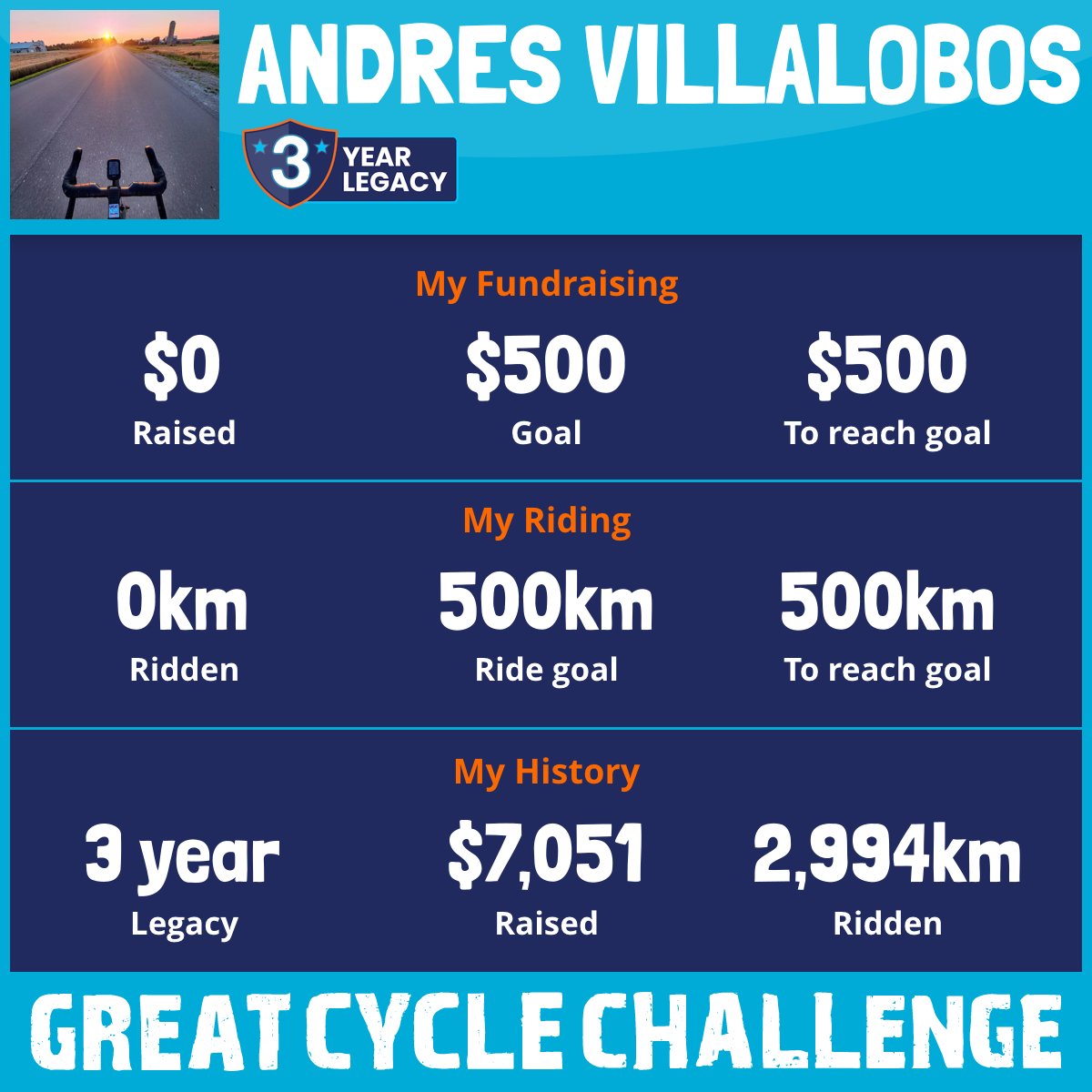 1,464 km Ridden$4,369 Raised2024