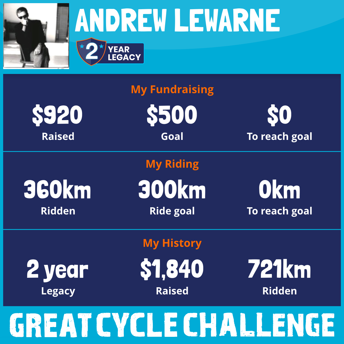 360 km Ridden$920 Raised2026
