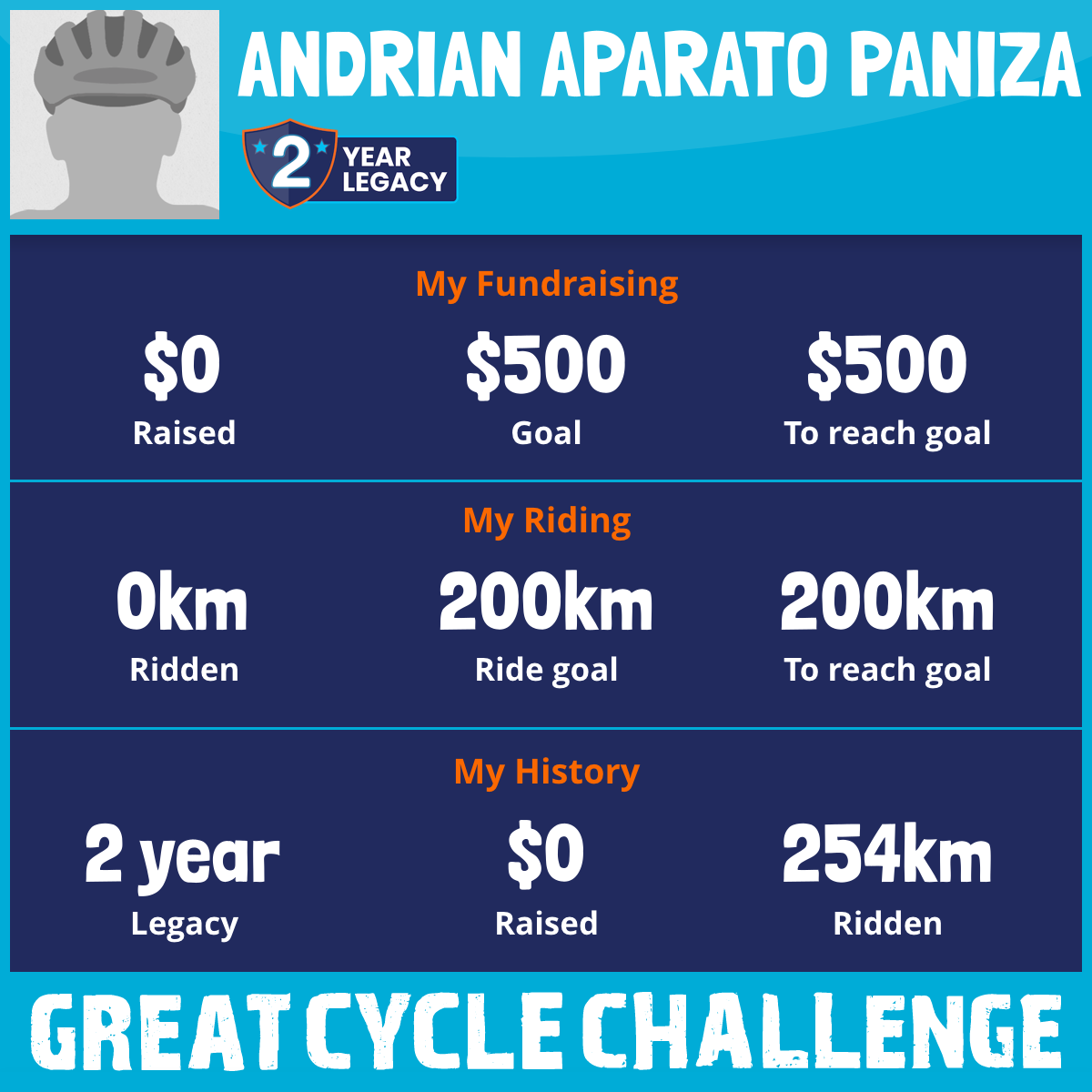 I've raised $0 My goal is $500 Donate Now