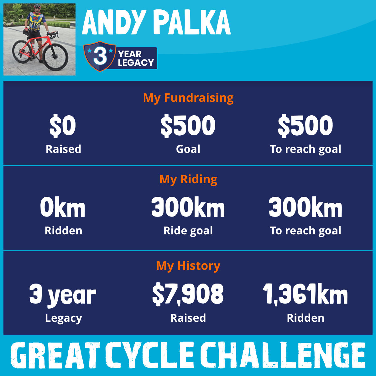 1,091 km Ridden$4,685 Raised2024