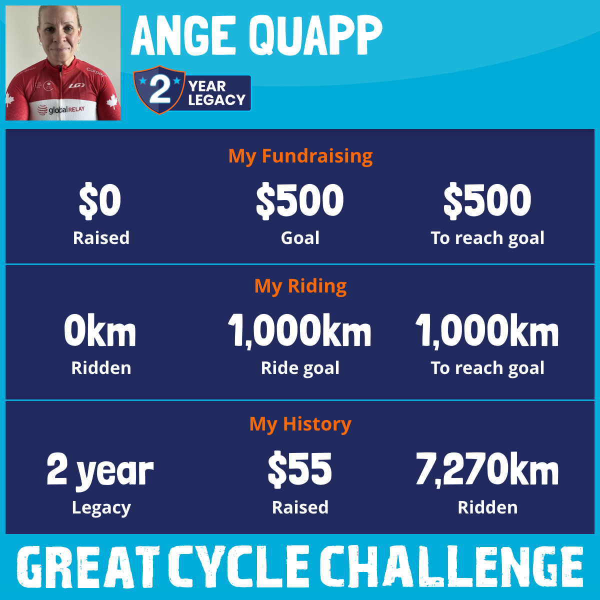 7,270 km Ridden$55 Raised2020