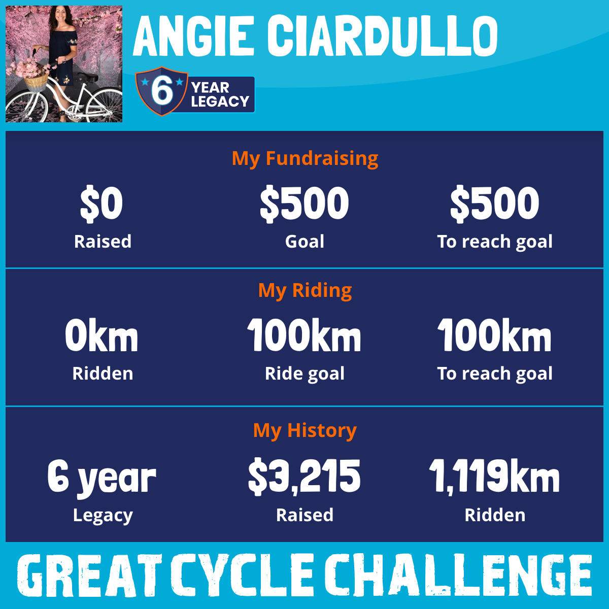 For a 6th year, I am taking part in the Great Cycle Challenge to fight kids' cancer.