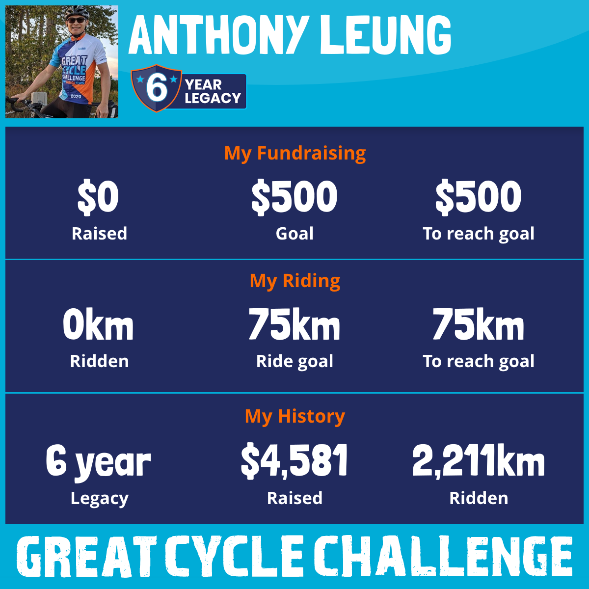 This August will be my 3rd year participating in the Great Cycle Challenge to fight kids' cancer!