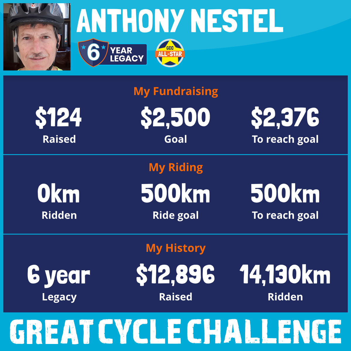 5,899 km Ridden$1,188 Raised2024