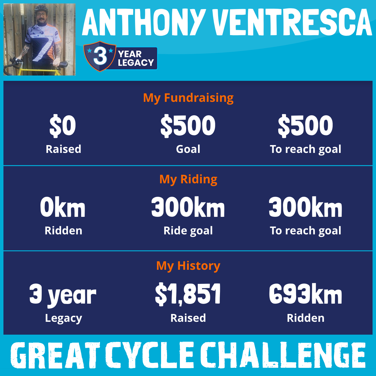 I've raised $0 My goal is $500 Donate Now