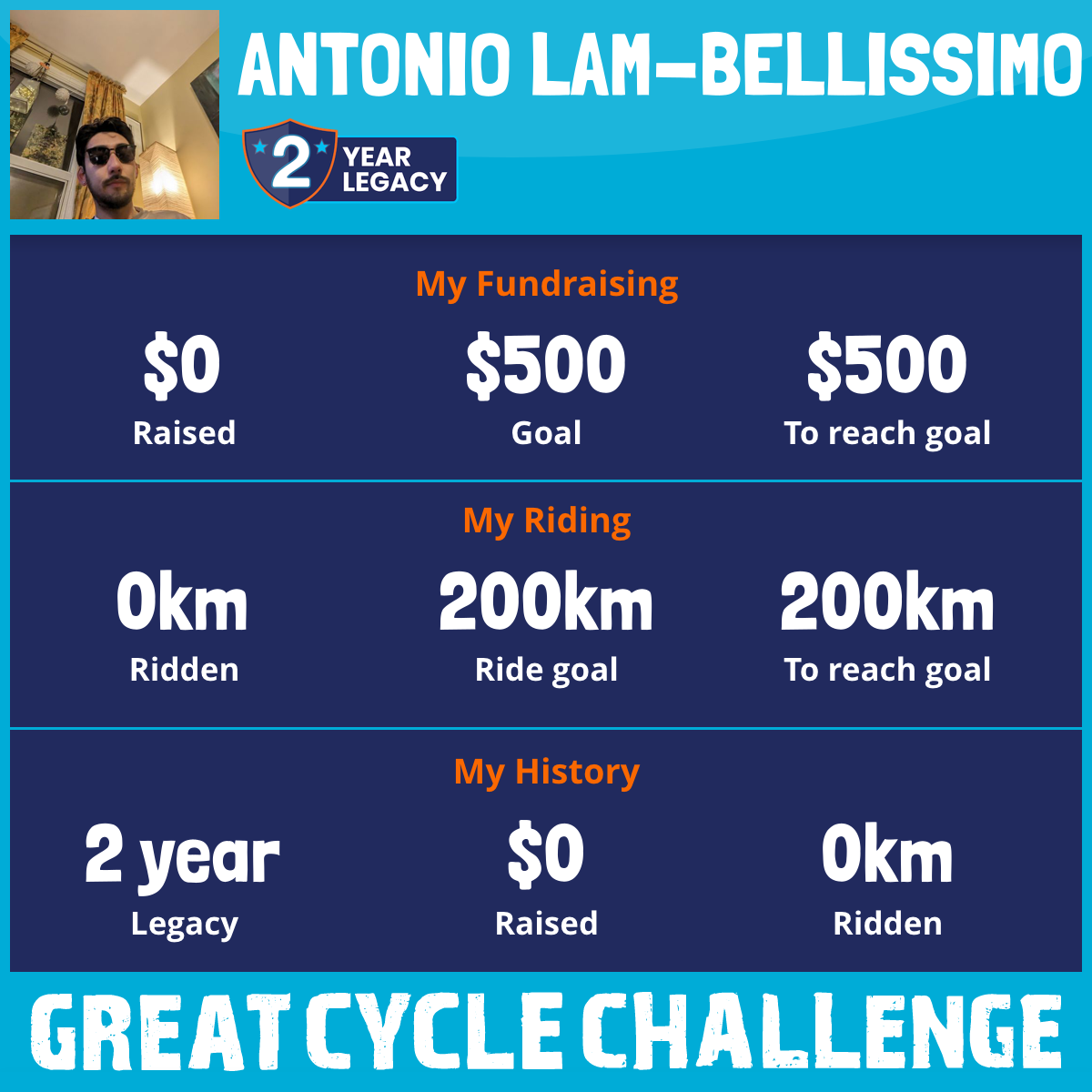 I've raised $0 My goal is $500 Donate Now
