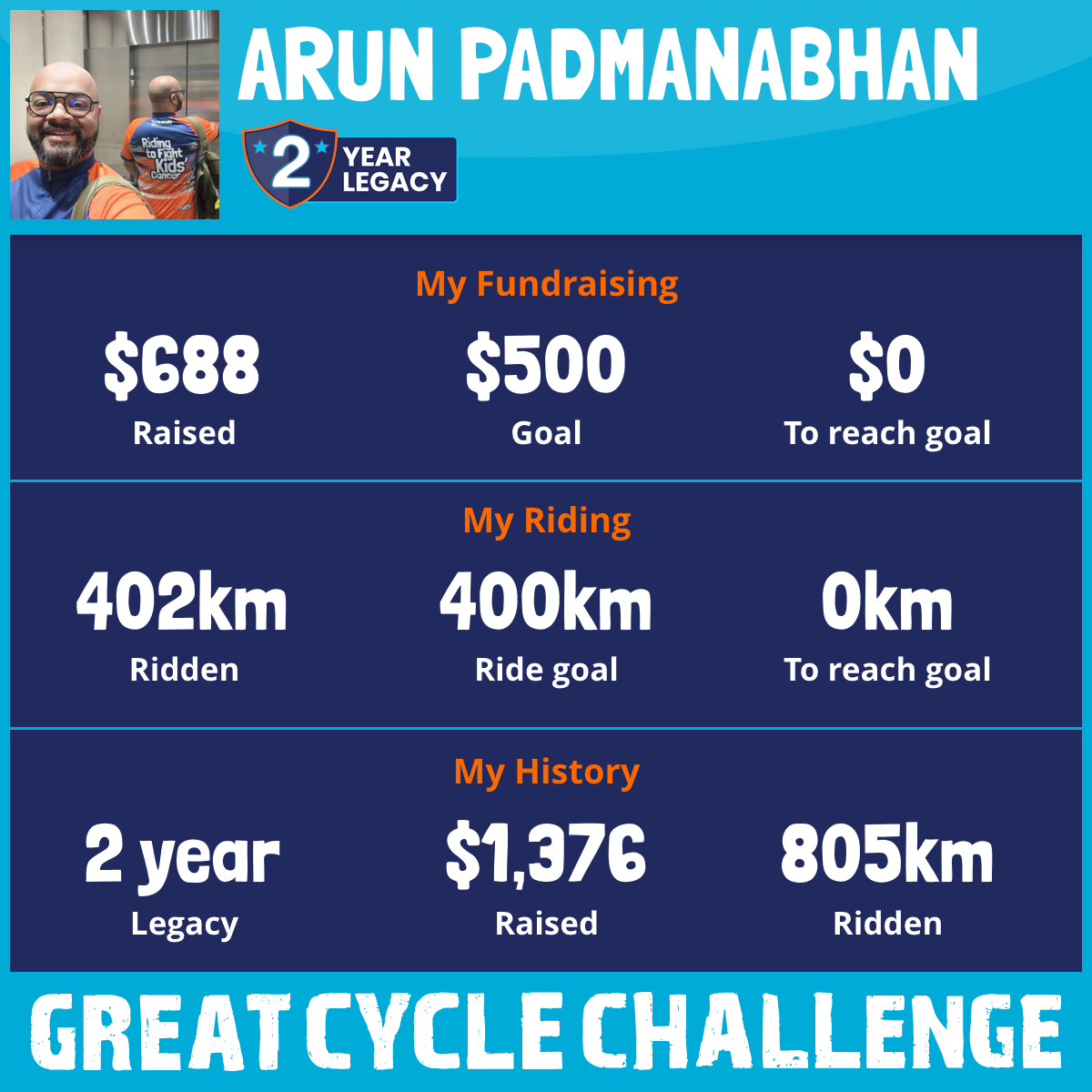 402 km Ridden$688 Raised2025