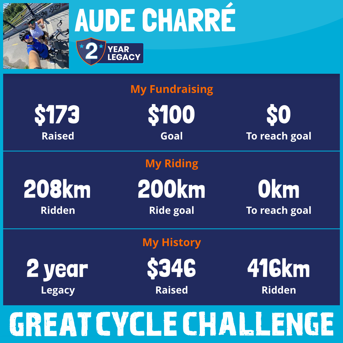 208 km Ridden$173 Raised2026
