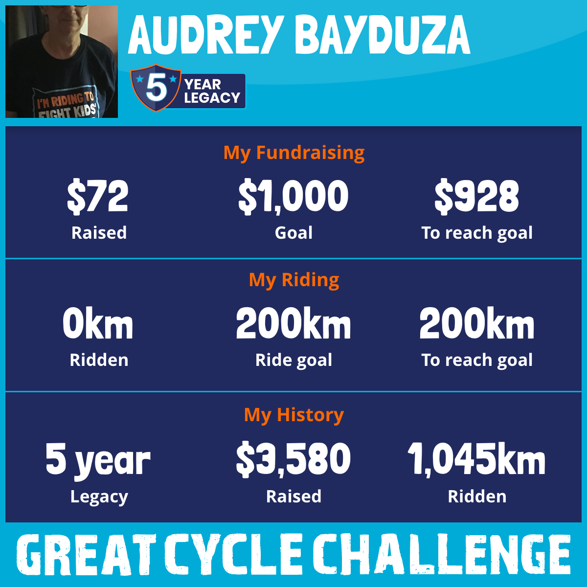This August, I am taking part in the Great Cycle Challenge to fight kids' cancer!