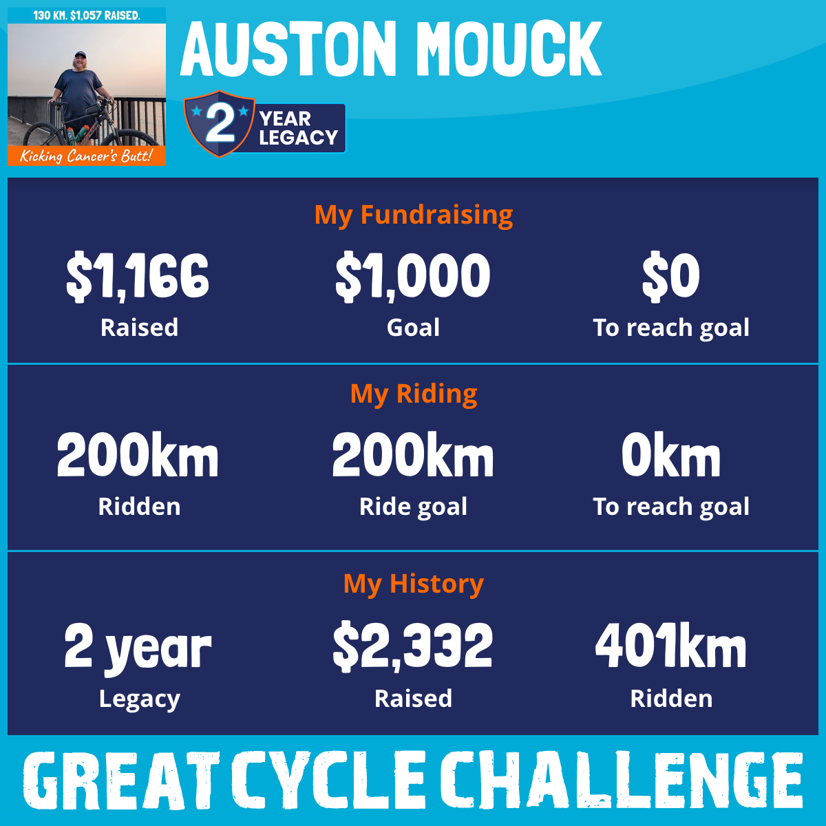 200 km Ridden$1,166 Raised2026