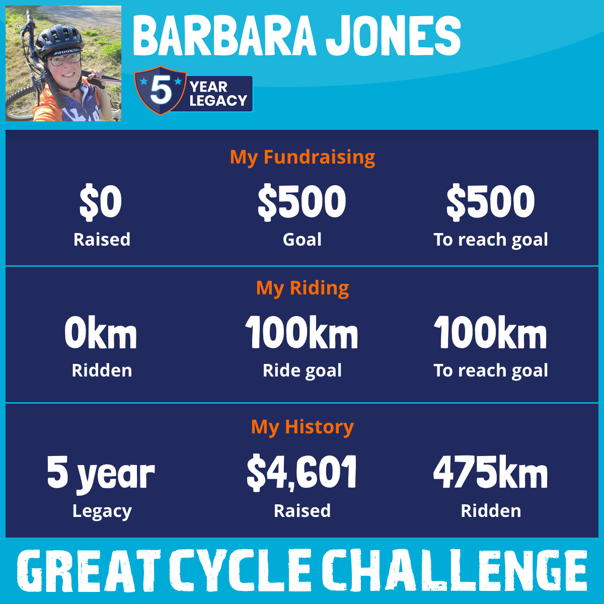 96 km Ridden$1,122 Raised2023
