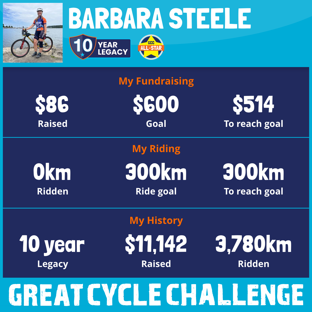 This August, I am taking part in the Great Cycle Challenge to fight kids' cancer for the 10th year in a row!