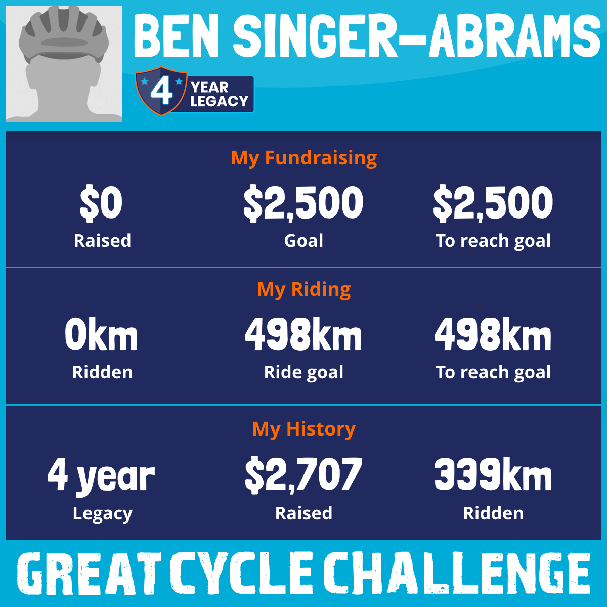 I am riding 498 km for Singer-Abrams Family. Please sponsor me and support my challenge to fight kids' cancer and save little lives.