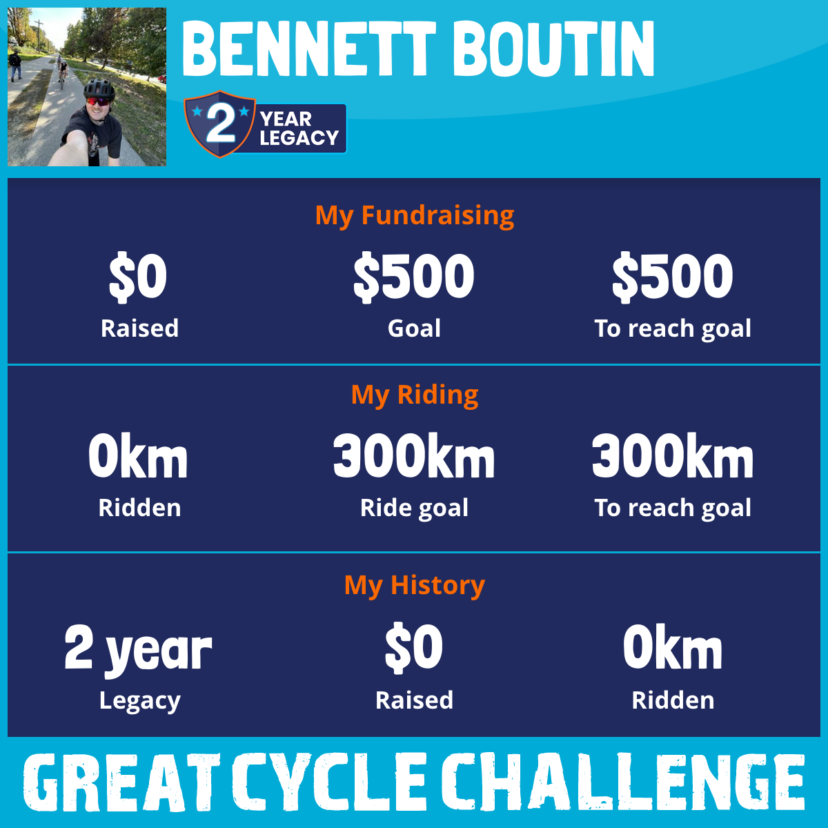I am riding 300 km for my grandmother, Pat. Please sponsor me and support my challenge to fight kids' cancer and save little lives.