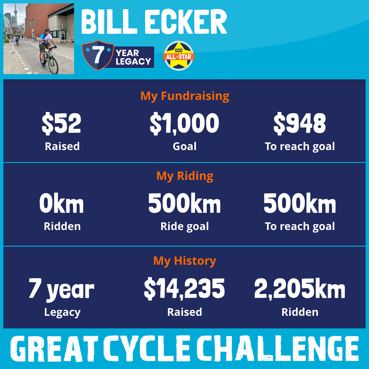 663 km Ridden$3,382 Raised2026
