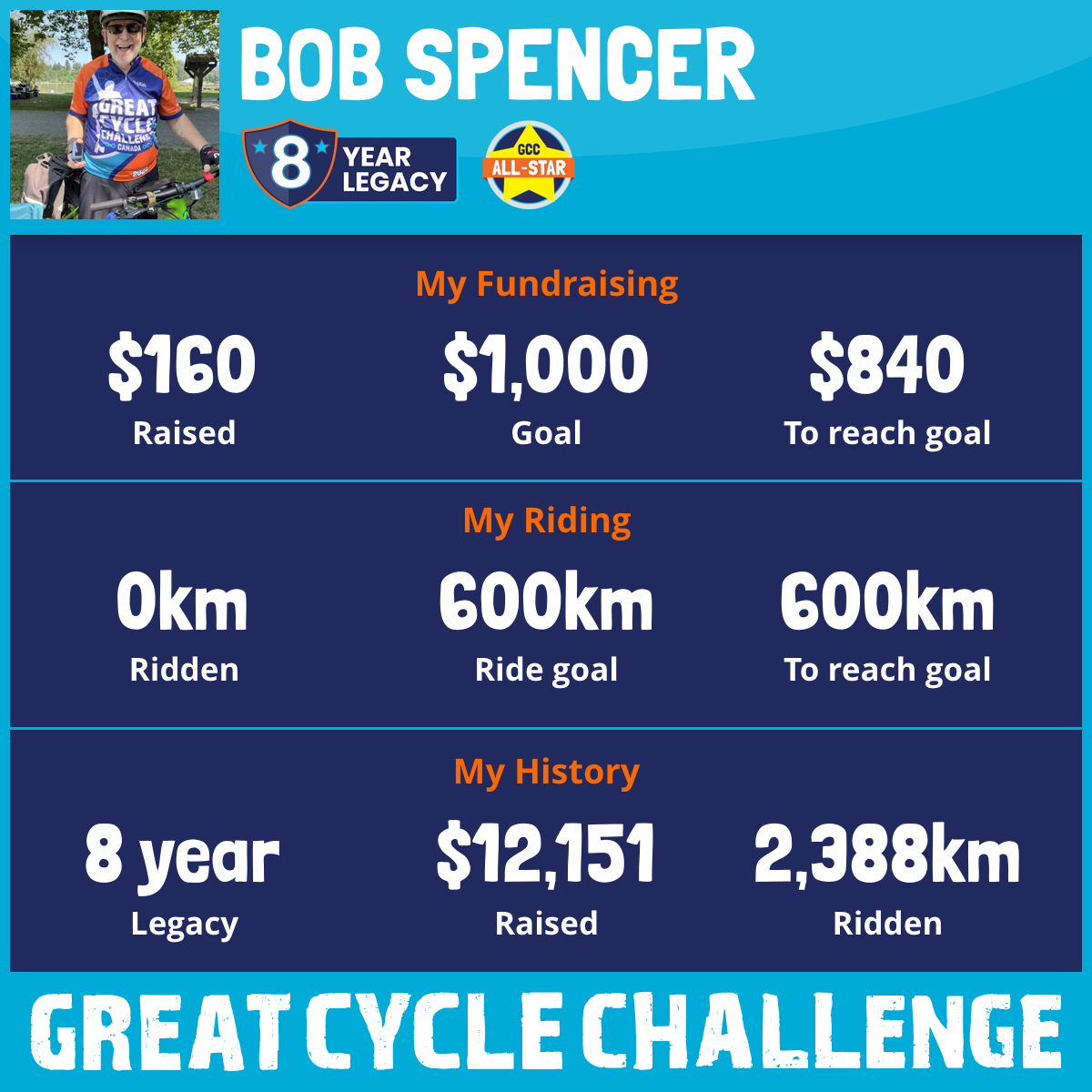 300 km Ridden$1,922 Raised2023