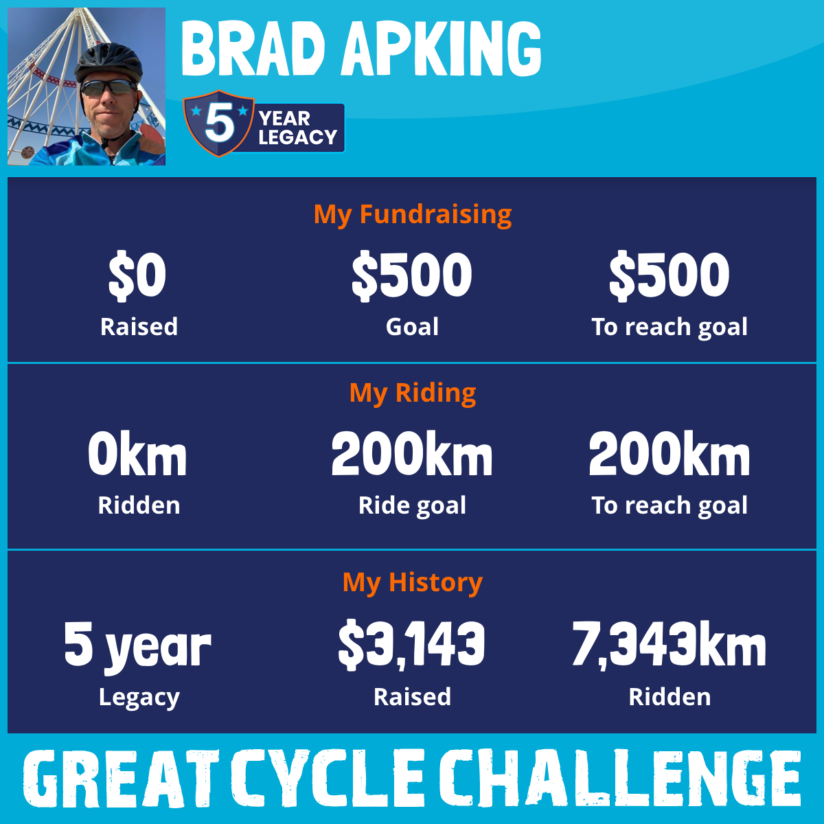 1,895 km Ridden$1,109 Raised2023