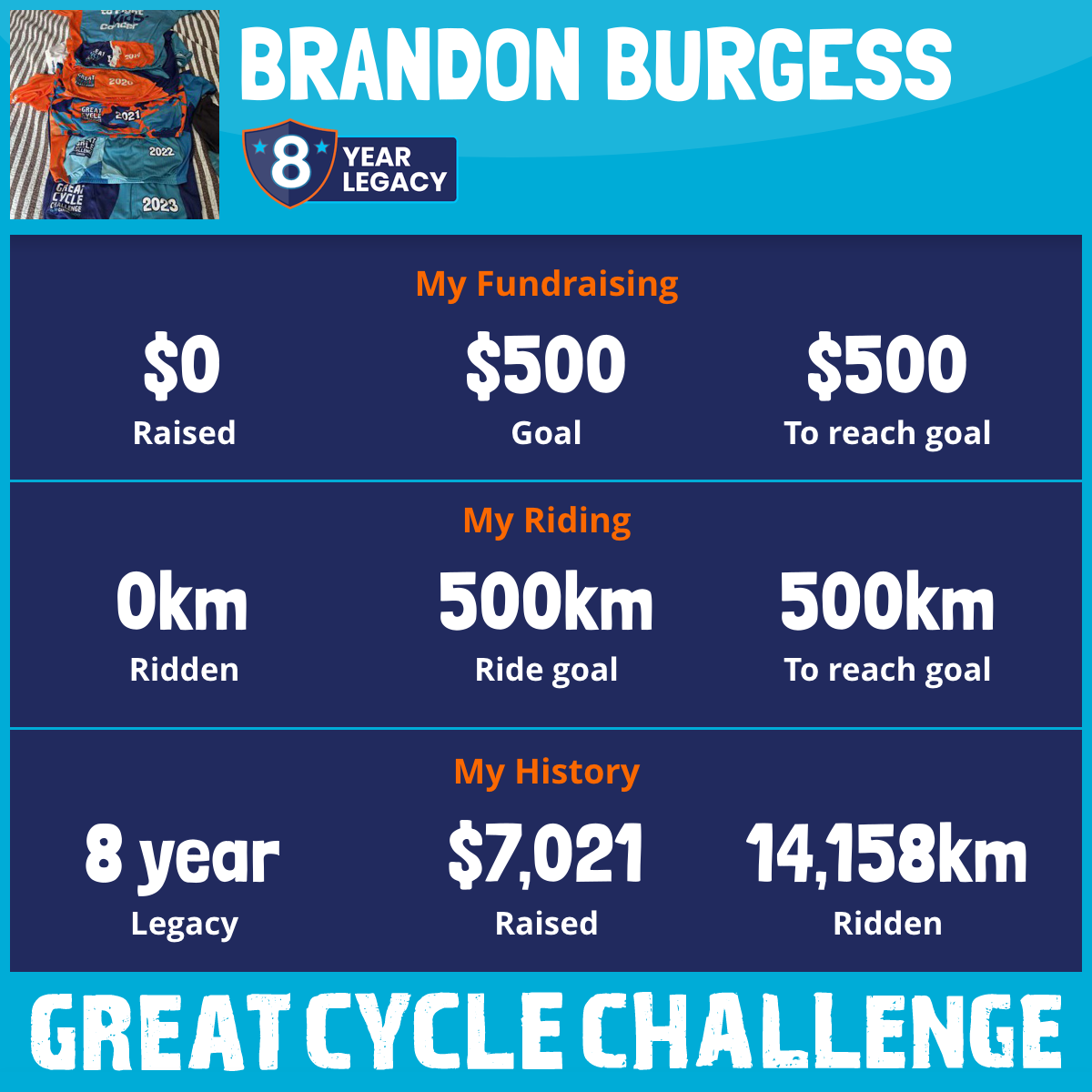 I am riding 500 km for Cyndi Burgess. Please sponsor me and support my challenge to fight kids' cancer and save little lives.