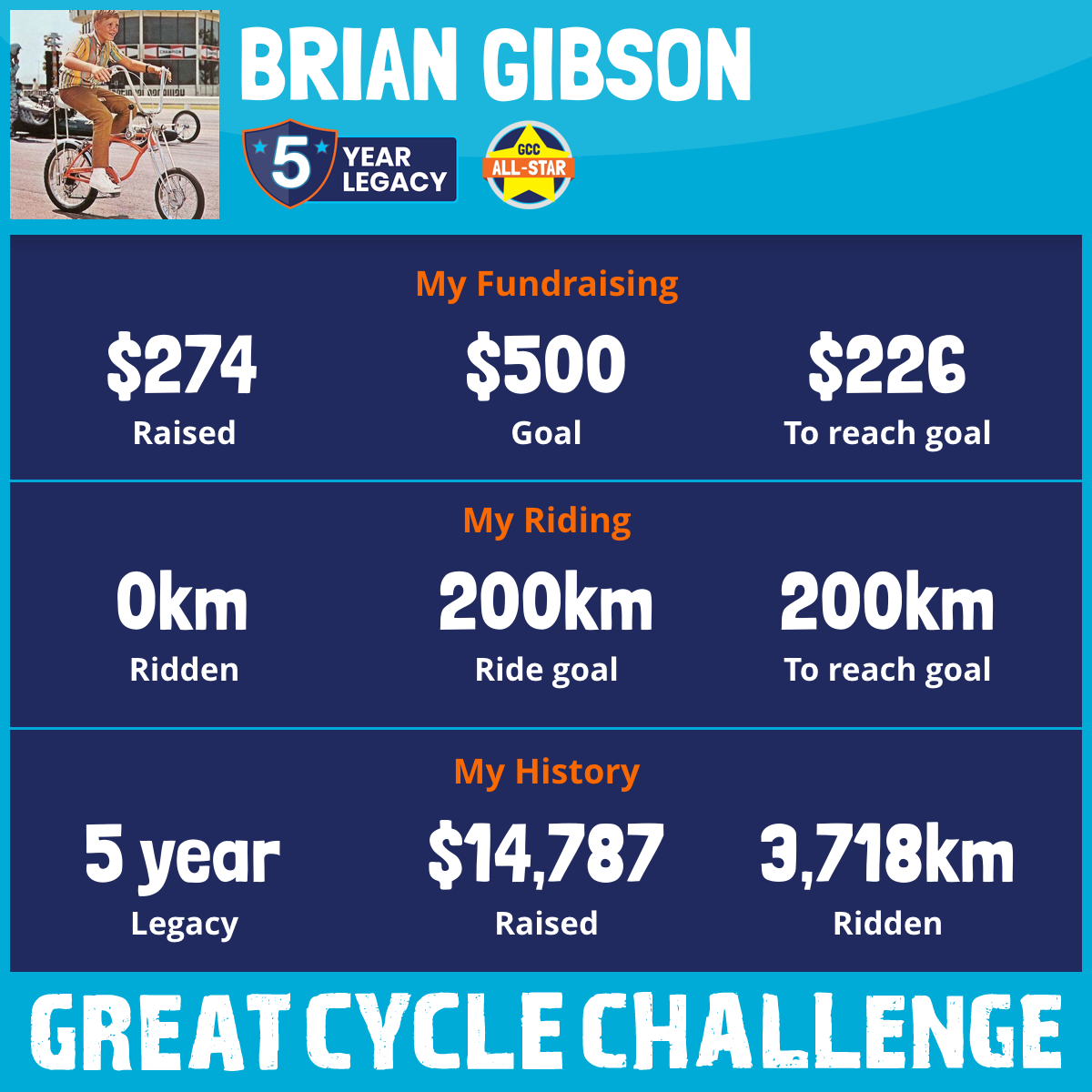 This August, I am taking part in the Great Cycle Challenge to fight kids' cancer!