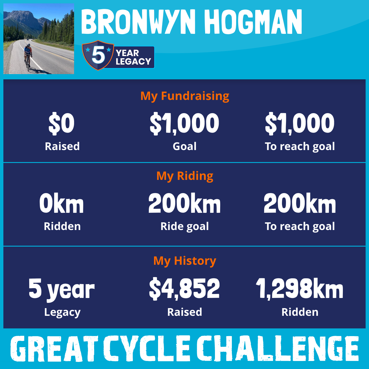 217 km Ridden$1,304 Raised2026