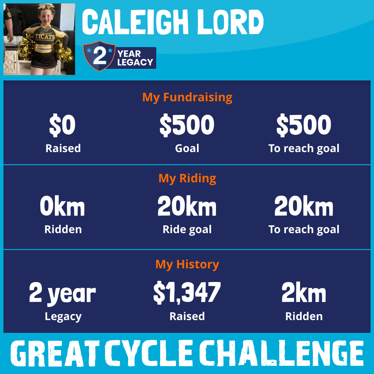 2 km Ridden$1,347 Raised2024