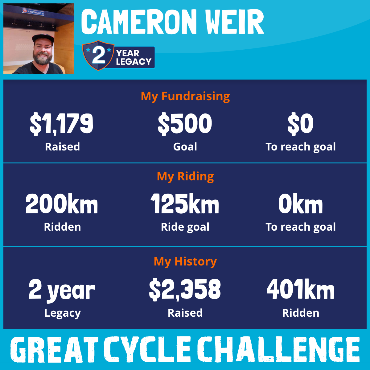 200 km Ridden$1,179 Raised2026