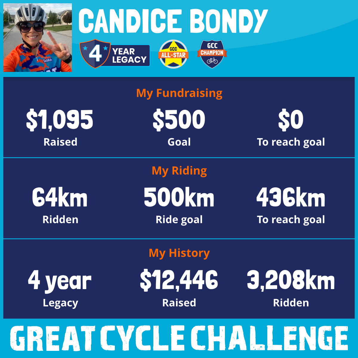 1,000 km Ridden$4,166 Raised2021