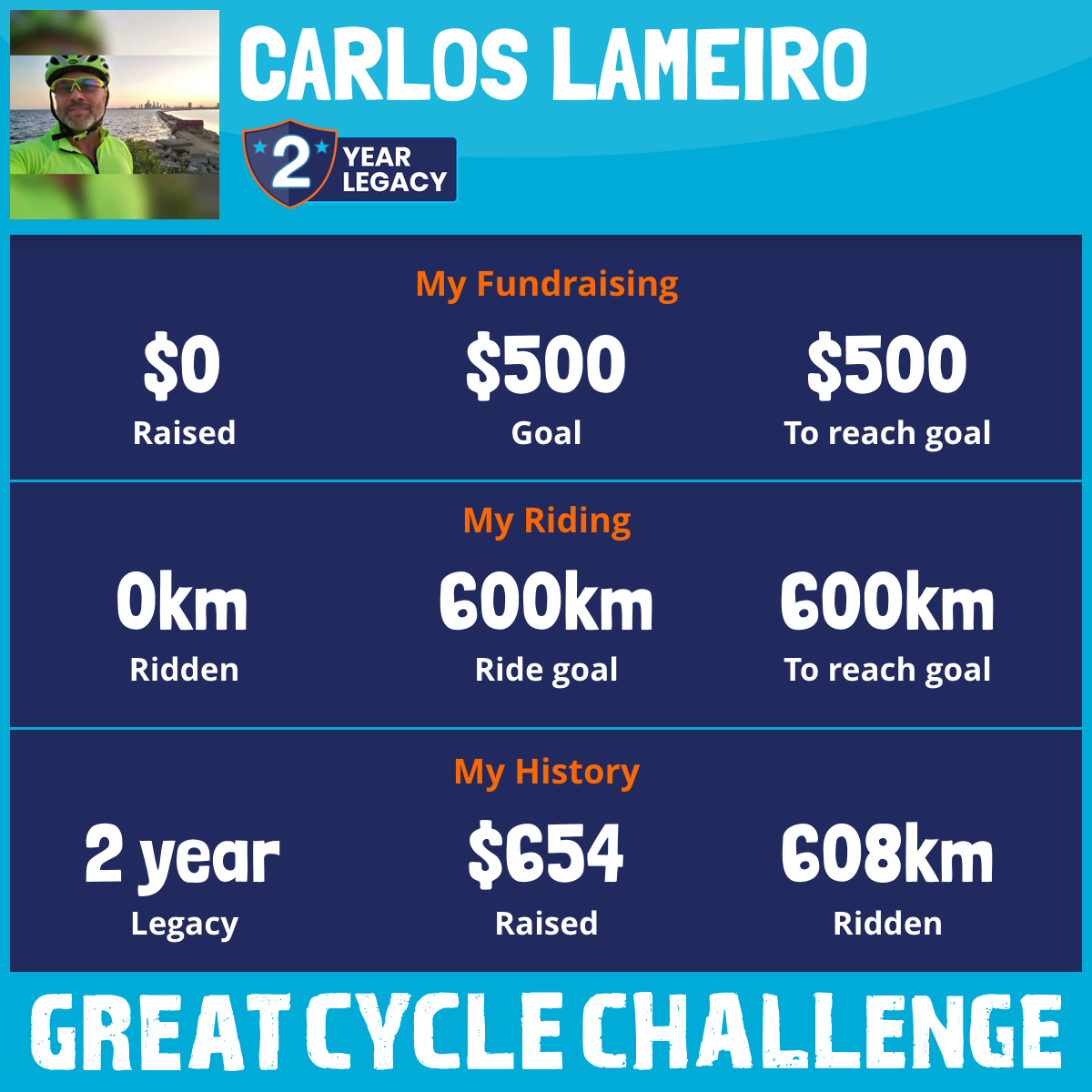 608 km Ridden$654 Raised2023