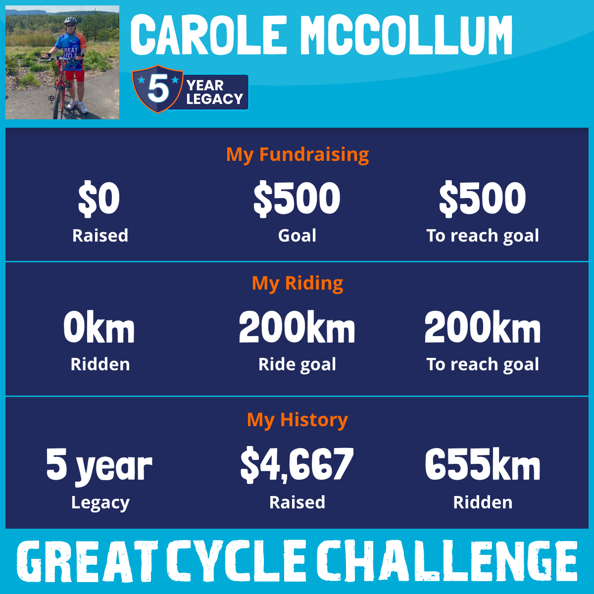 216 km Ridden$1,470 Raised2023