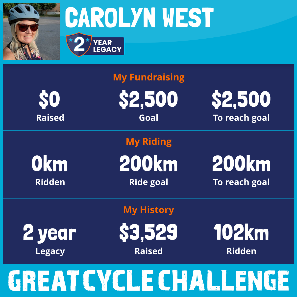 102 km Ridden$3,529 Raised2025
