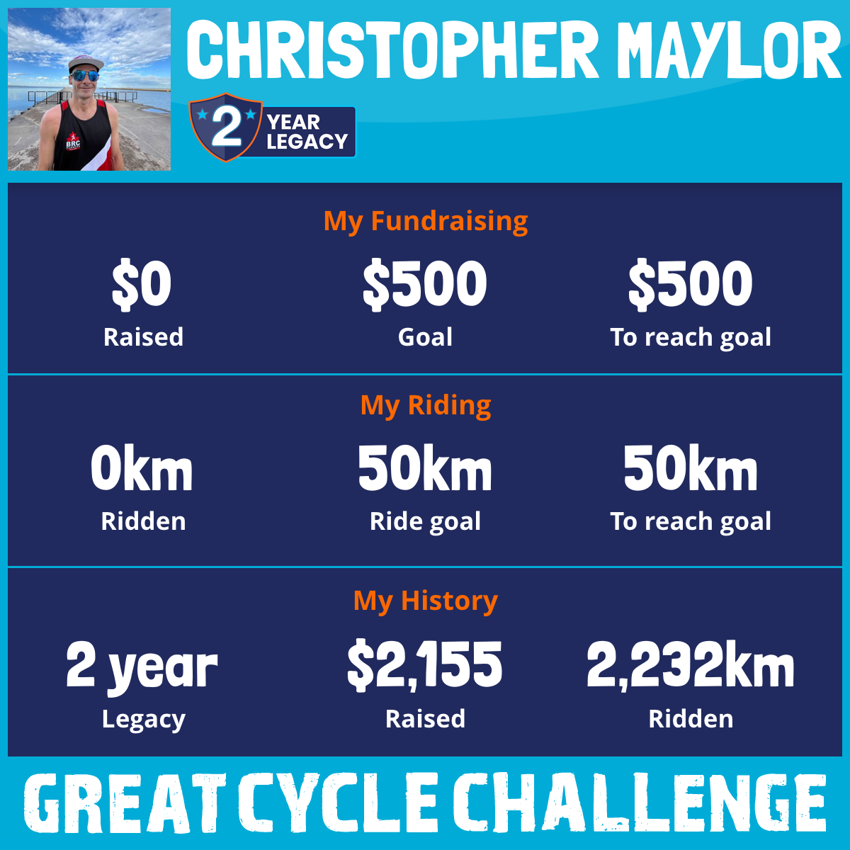 2,232 km Ridden$2,155 Raised2024