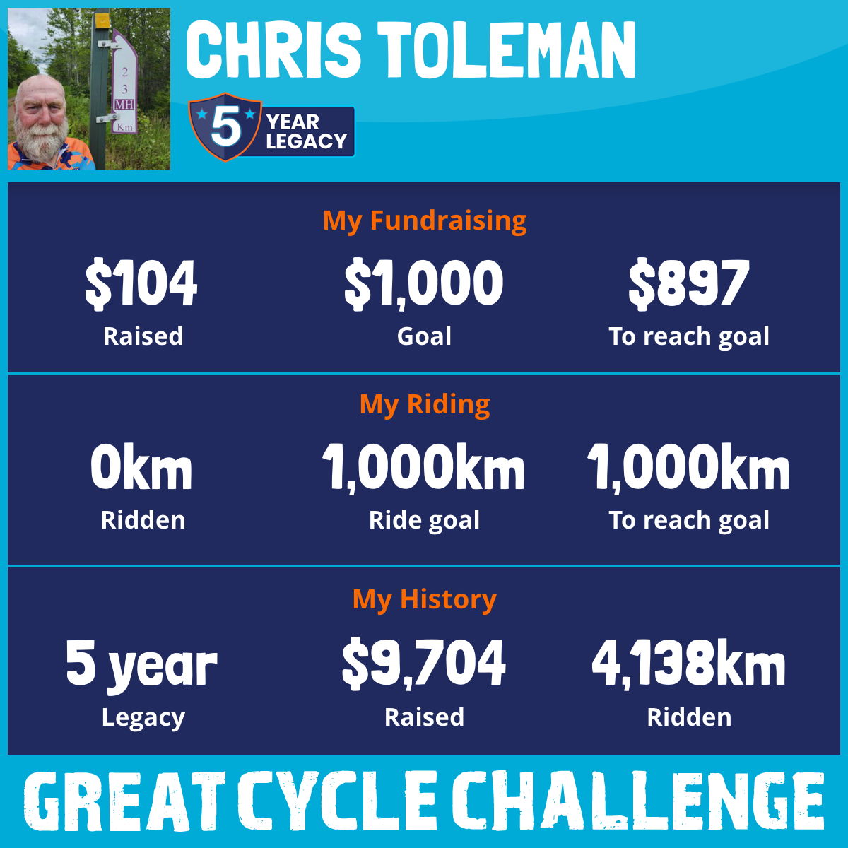 This is my fifth year riding in the Great Cycle Challenge. Those of you who know me know I love to ride my bike but I'm not known for being overly active on social media or speaking in public!