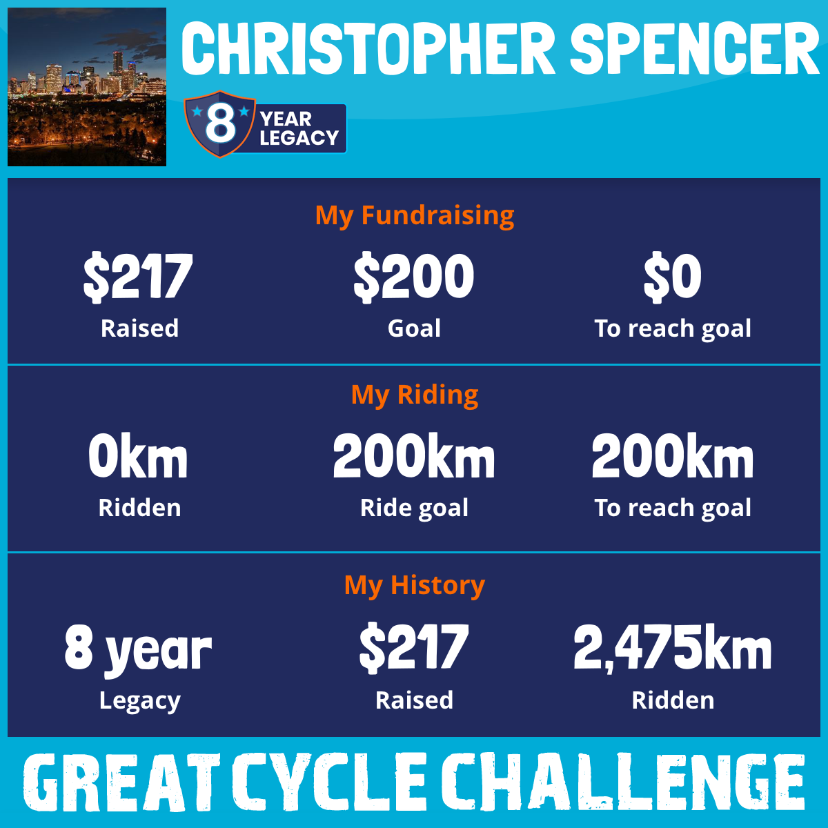 This August is my eighth straight year riding in support of kids facing cancer, I am taking part in the Great Cycle Challenge to fight kids' cancer!
