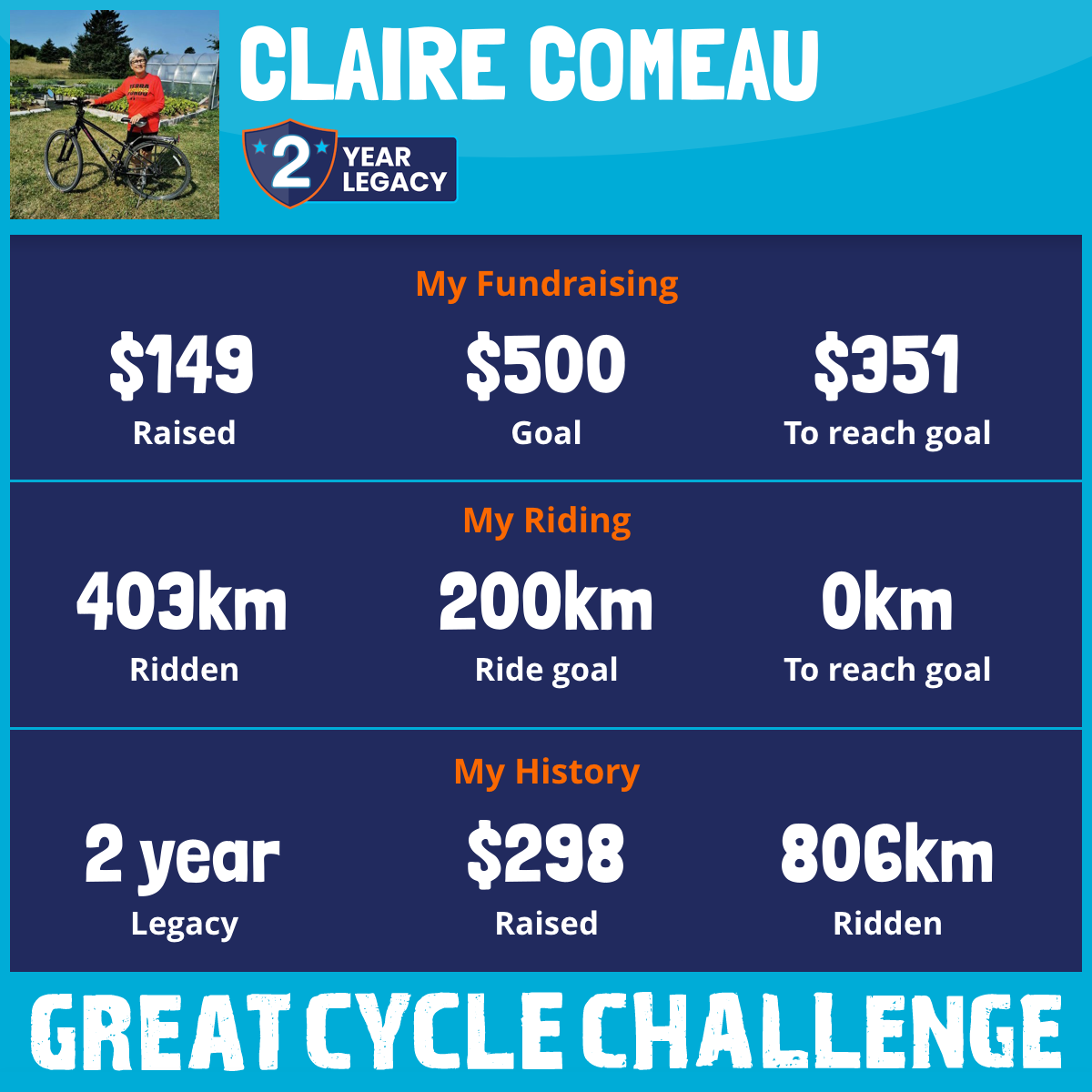 403 km Ridden$149 Raised2026