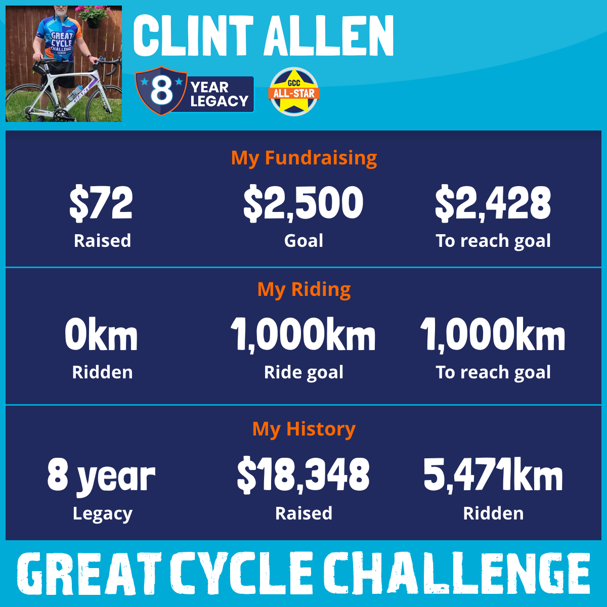 I am riding 1,000 km for Joy Allen. Arabella Allen. Larry Muldrew. Please sponsor me and support my challenge to fight kids' cancer and save little lives.